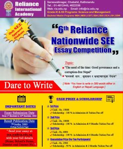 SEE दिएर बसेका विद्यार्थीका लागि: रिलायन्समा राष्ट्रव्यापी निबन्ध प्रतियोगिता हुँदै